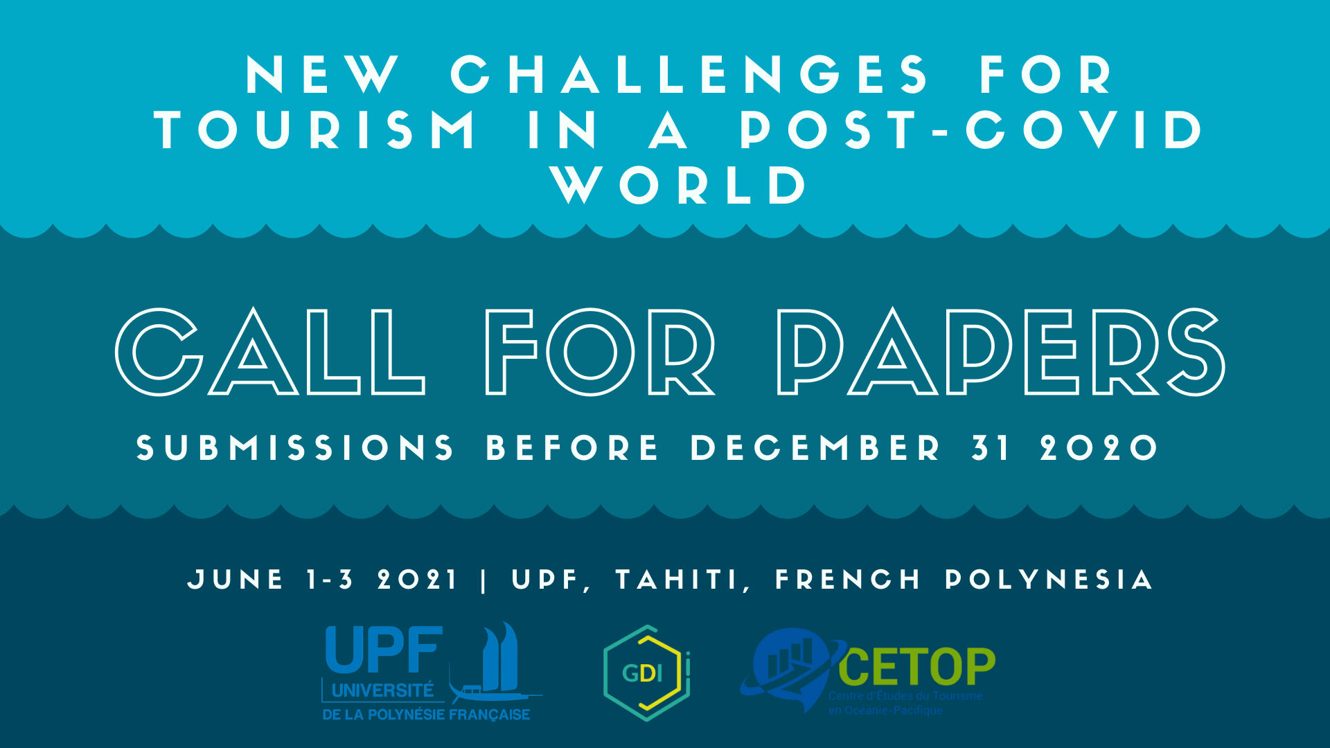 The Center for Research on Tourism in Oceania-Pacific (CETOP) and the Governance and Insular Development research center (GDI, EA 4240) organize at the University of French Polynesia (UPF) an international conference on "New challenges for tourism in a post-COVID world”, June 1st-3rd, 2021 (new dates) in Tahiti.